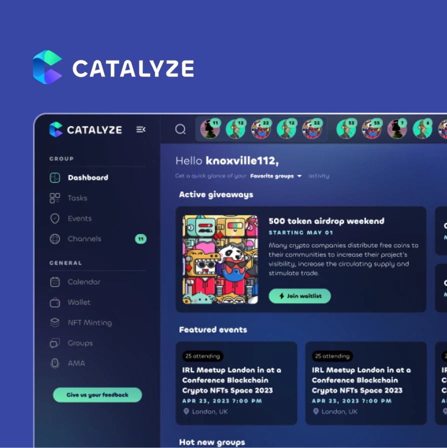CatalyzeA one-stop social-fi application for organising Web3 experiences and building community. Event management, crowdsourcing, chat function, and reward tooling.